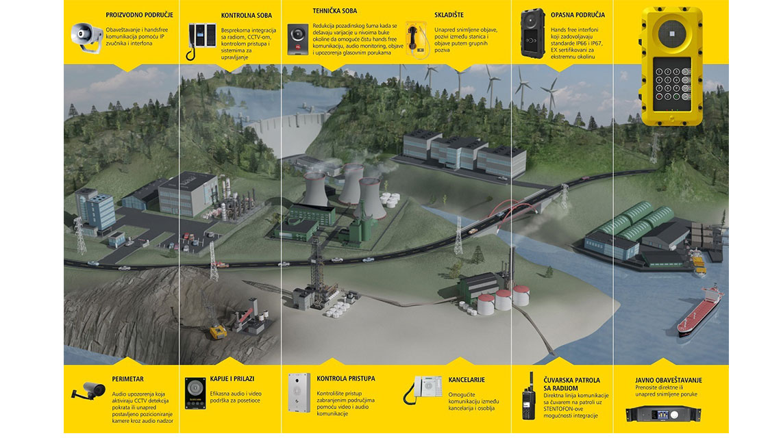 Rukovođenje fabrikom efikasno i bezbedno, zahteva pametan, pouzdan i kvalitetan sistem komunikacije. Naša rešenja su dizajnirana da zadovolje potrebe vlasnika fabrika, menadžera, zaposlenih i posetilaca.